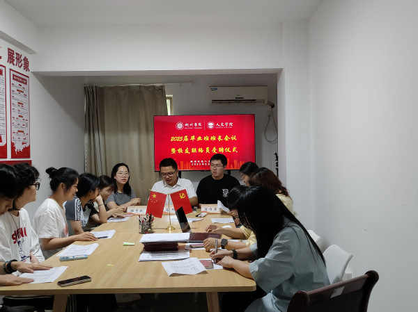 为落实好学校对2025届学生毕业离校相关工作部署和要求,发挥好校友联络员的桥梁纽带作用,6月9日下午,人文学院在党建中心举办“2025届毕业班班长会议暨校园联络员受聘仪式”。人文学院党委副书记、纪委书记赵聪,学工办副主任葛玮,团学负责人吕佶康,2021级辅导员班宇威出席会议,毕业班各班班长、校友联络员参加此次会议。